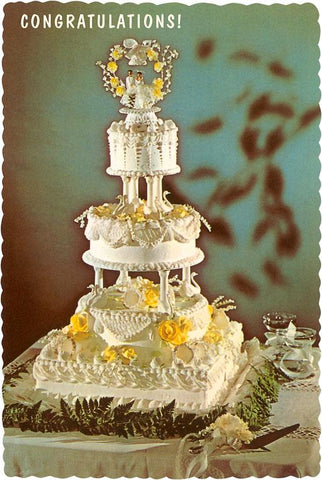 IO-177 Congratulations, Three-Tiered Wedding Cake - Vintage Image