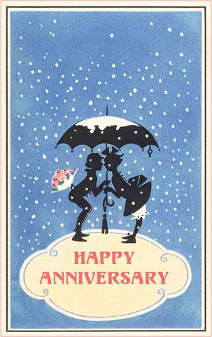 IO-194 Happy Anniversary, Couple under Umbrella - Vintage Image