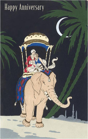 IO-249 Happy Anniversary, Couple Riding Elephant - Vintage Image