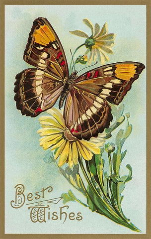 IO-291 Best Wishes, Butterfly and Daisy - Vintage Image