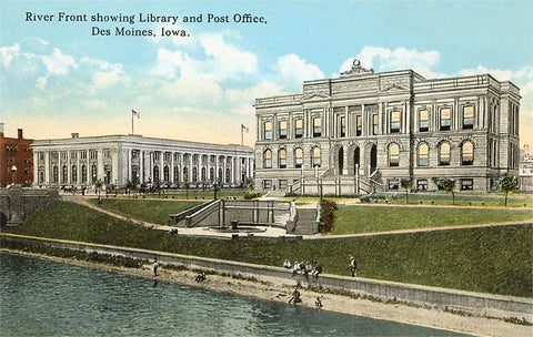 IA-17 Library and Post Office, Des Moines - Vintage Image