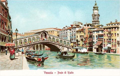 IT-25 Painting of Rialto Bridge, Venice, Italy - Vintage Image