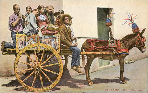 IT-57 Sicilian Cart and Donkey, Palermo, Italy - Vintage Image