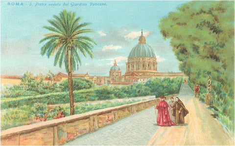 IT-120 St. Peter's Basilica from the Vatican Gardens, Rome - Vintage Image