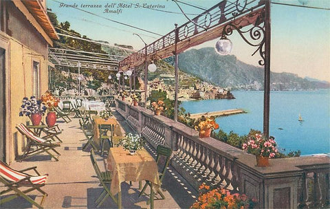 IT-174 Hotel Terrace on Amalfi Coast, Italy - Vintage Image