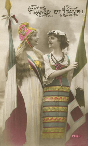 IT-184 French, Italian Girls in Native Costumes - Vintage Image