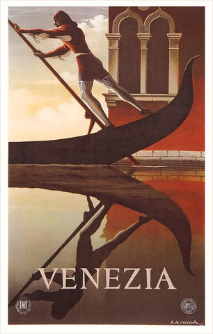 IT-196 Leaning Gondolier, Venice, Italy - Vintage Image