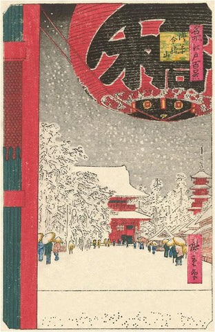 JN-101 Japanese Woodblock, Temple in Snow - Vintage Image