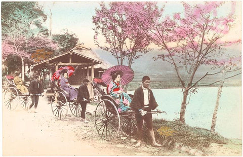 JN-104 Rickshaws by Lake, Japan - Vintage Image