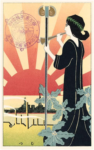 JN-117 Japanese Woman with Trumpet - Vintage Image