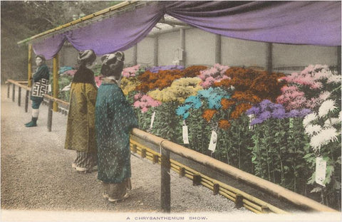 JN-164 Geishas Eying Chrysanthemums - Vintage Image