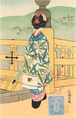 JN-310 Geisha on Bridge - Vintage Image