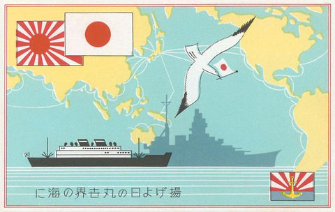 JN-326 Seagull over Ocean Liner - Vintage Image