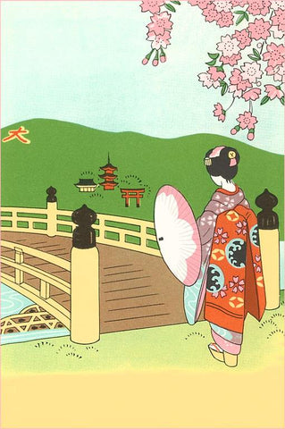 JN-341 Geisha and Bridge - Vintage Image