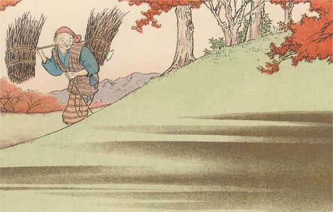 JN-342 Old Man Carrying Kindling - Vintage Image