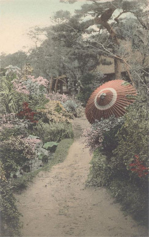 JN-379 Garden Path with Umbrella - Vintage Image