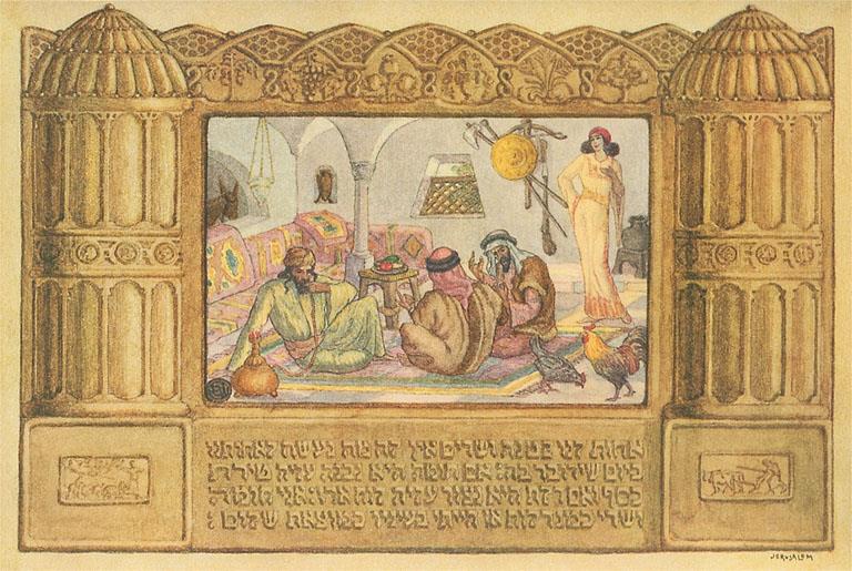 JR-23 Biblical Scene, Hebrew Text - Vintage Image