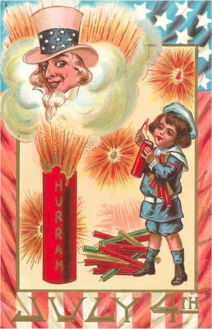 JF-03 4th of July, Child with Fireworks, Uncle Sam - Vintage Image