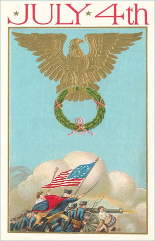 JF-26 4th of July, Eagle Holding Wreath, Battle - Vintage Image