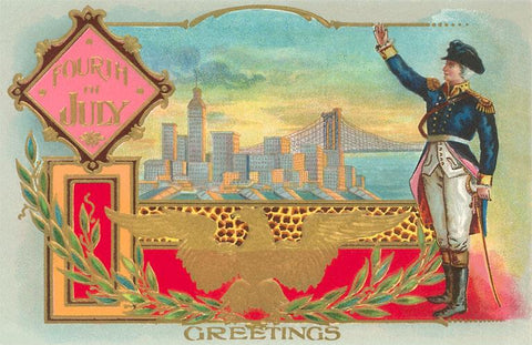 JF-29 4th of July, George Washington Greeting City - Vintage Image