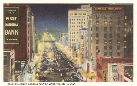 KS-75 Douglas Avenue at Night, Wichita - Vintage Image