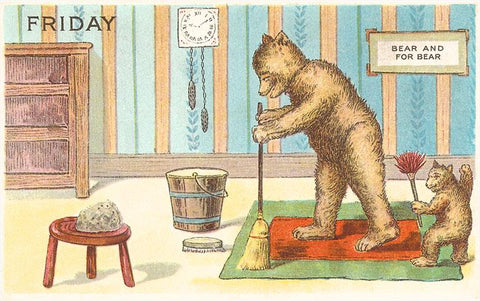 KF-03 Friday, Teddy Bears Cleaning House - Vintage Image