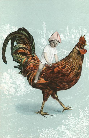 KF-08 Boy Riding Giant Rooster - Vintage Image