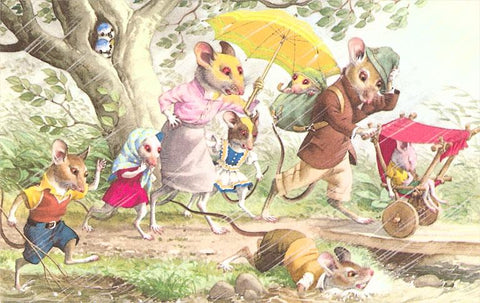 KF-24 Mouse Family in Rain Storm - Vintage Image