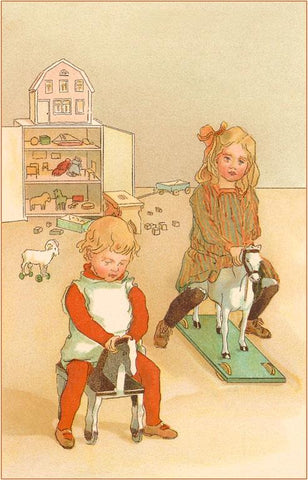 KF-30 Children on Hobby Horses - Vintage Image