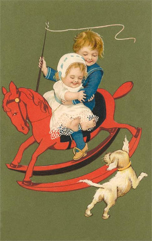 KF-31 Children on Rocking Horse - Vintage Image