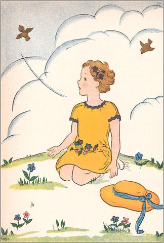 KF-132 Little Girl with Hat on Hill - Vintage Image