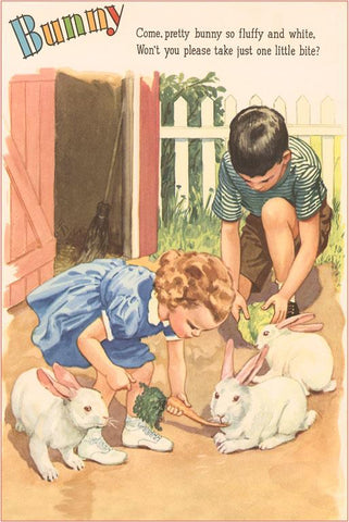 KF-144 Bunny, Children Feeding Rabbits - Vintage Image