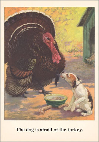 KF-173 Dog Afraid of Turkey - Vintage Image