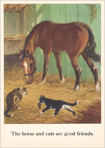 KF-174 Horse and Cats are Good Friends - Vintage Image