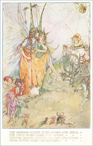 KF-257 Fairies Spinning Spiderwebs - Vintage Image