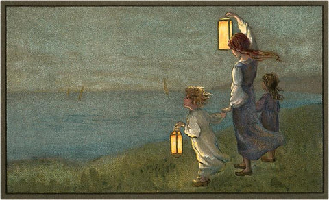 KF-279 Children Signaling with Lanterns - Vintage Image