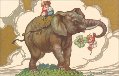 KF-326 Children on Elephant - Vintage Image