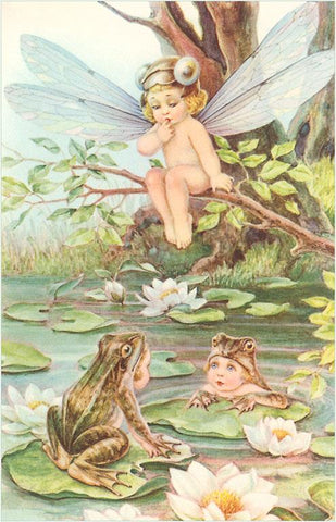 KF-331 Baby with Dragonfly Wings and Frog Children - Vintage Image
