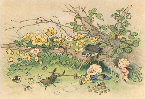 KF-357 Leprechaun Fending Off Beetle - Vintage Image