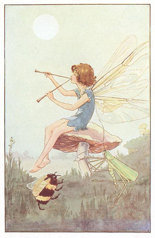 KF-372 Fairy with Pipes and Insects - Vintage Image