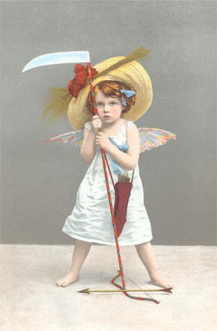 KF-520 Old Fashioned Little Girl with Sickle - Vintage Image