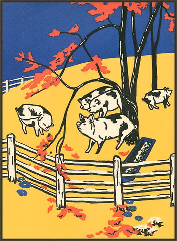 KF-559 Pigs Waiting for Acorns - Vintage Image
