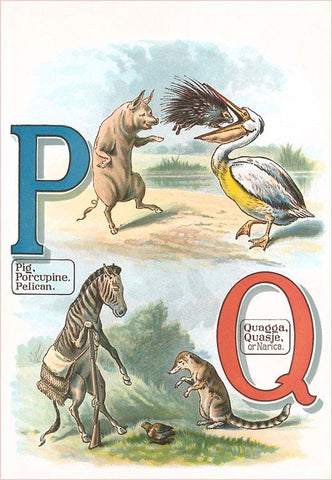 KF-611 Alphabet Animals, P and Q - Vintage Image