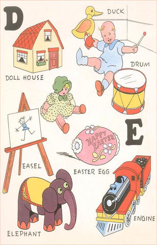 KF-619 Learning the Alphabet, D and E - Vintage Image