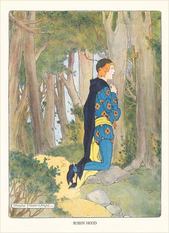 KF-704 Robin Hood Praying in Forest - Vintage Image