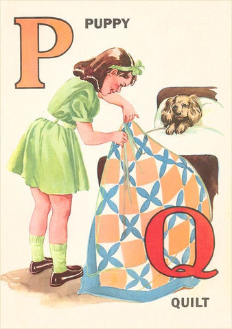 KF-722 P for Puppy, Q for Quilt - Vintage Image