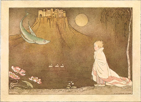 KF-727 Boy Watching Castle on HIll - Vintage Image