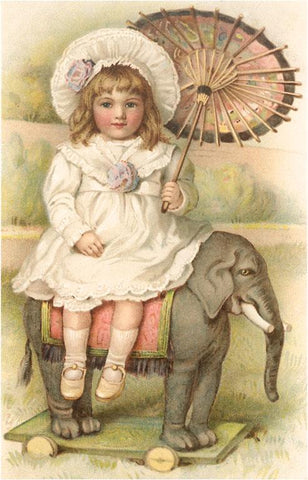 KF-823 Girl on Toy Elephant - Vintage Image