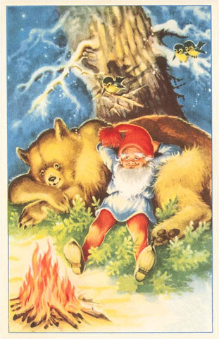 KF-826 Elf Resting on Bear - Vintage Image