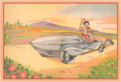 KF-832 Kids in Futuristic Car - Vintage Image